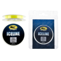 Monofilament for isfiske. Sena er gul og godt synlig på isen.