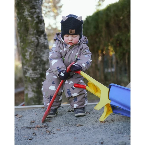 Parkdress baby for kalde vinterdagar. Laga i 100 % Oxford Polyester som er slitesterk (50 000 sykluser Martindale) og pustande (minst 5000 g/m2/24h). Dressen har ei vannsøyle på 12 000 og held minsten tørr sjølv i våt snø. Foret er av 140g vatt og tørker fort om ein vrenger den etter vask. Dressen er utstyrt med slitesterke fotstrikkar, namnelapp, refleksar på ermer, bein og rygg og snøstopp på ermer. Dressen har sikkerhetshette som om er både avtagbar og regulerbar.