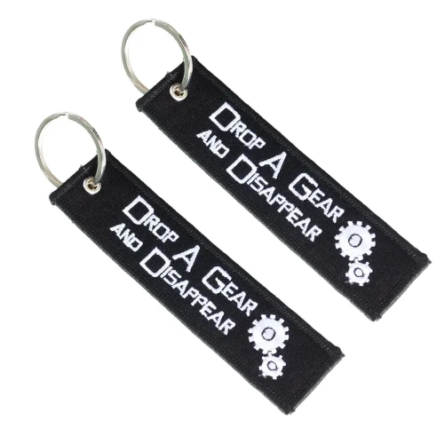 1 stk Nøkkelring til MC med brodert: "Drop A Gear And Disappear"