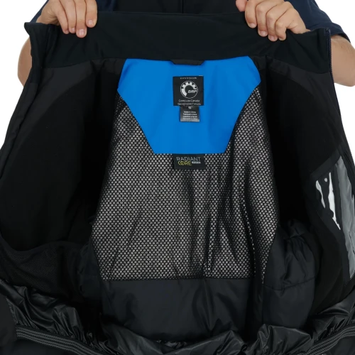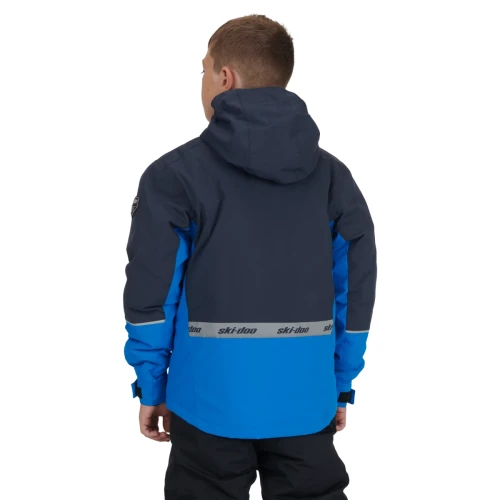 Featuring cozy polar fleece and a thoughtful design made for kids who are still growing, the Teens' Ski-Doo Particle Jacket is an option for multiple seasons of runs. Tired of pulling out last year's jacket to find that the sleeves are much too small? We've solved this issue with our growing sleeves system, which adds up to two additional inches, so your teen gets more use out of this jacket. 200 g of ThermaLoft® insulation and Radiant Core Technology ensure warmth even when temperatures plummet, while reflective details get them noticed even when light is low. Other intelligent additions include waterproof zippers, a fixed powder skirt, a removable hood, an interior cell phone pocket and an interior beanie pocket.