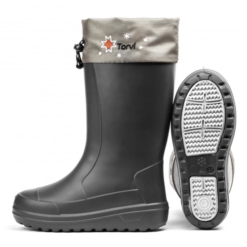 Torvi Onega er moderne, komfortable og varme EVA-varmestøvler. Bunnsålen har TPE-mønster, som forhindrer skli. Holder form selv ved langvarig bruk, sprekker ikke i kulde og tåler tung bruk. Opprettholder godt grepfølelse selv på isknuser og glatt leire. Passer også til å slå sammen vått tre eller glatte fliser.Snølåsen holder snø og slaps vekk.